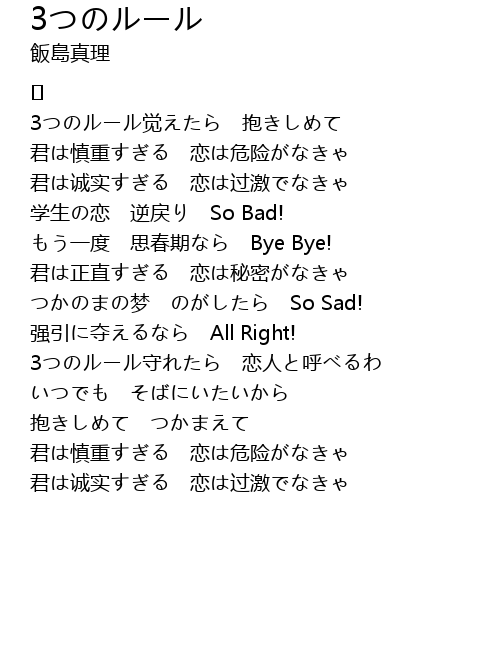 | 3つのルール守れたら 恋人と呼べるわ | |