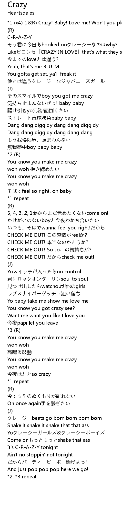 | *1 (x4) (J&R) Crazy! Baby! Love me! Won't you please! | |