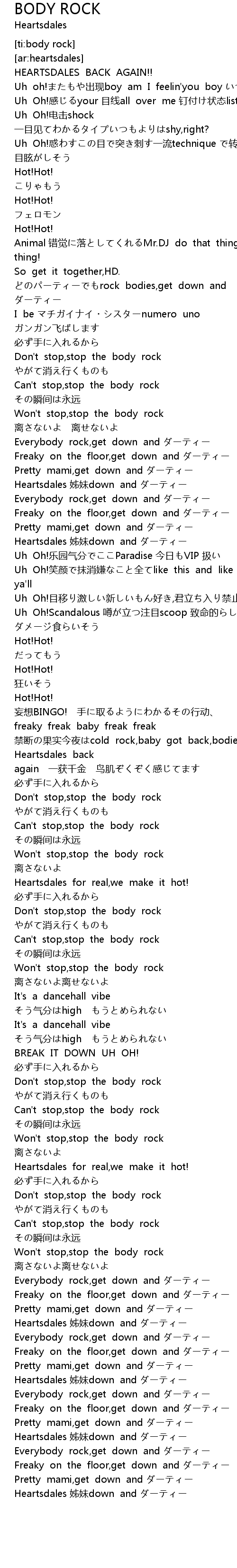 | [00:53.801] | どのパーティーでもrock bodies,get down and ダーティー |