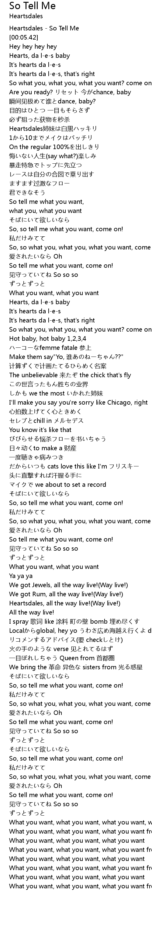 | [03:23.83] | So, so what you, what you, what you want, come on! |