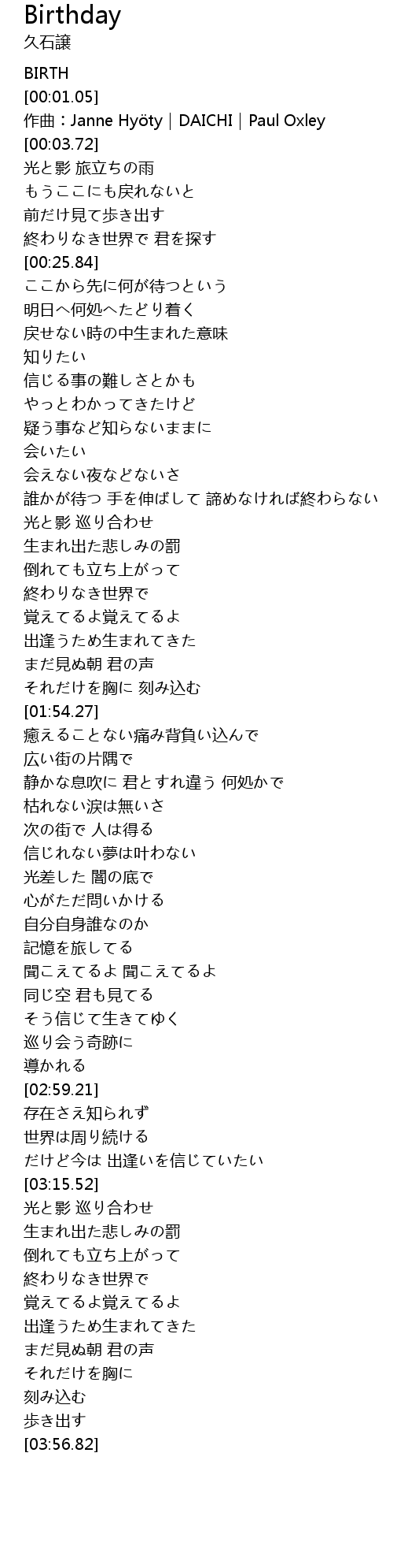 | [00:02.48] | zuò qǔ Janne Hy ty DAICHI Paul Oxley |