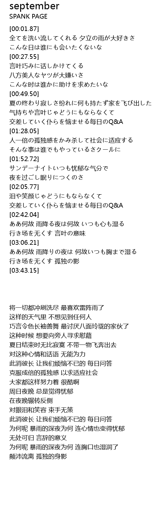| [01:55.26] | サンデーナイトいつも忧郁な气分で |
