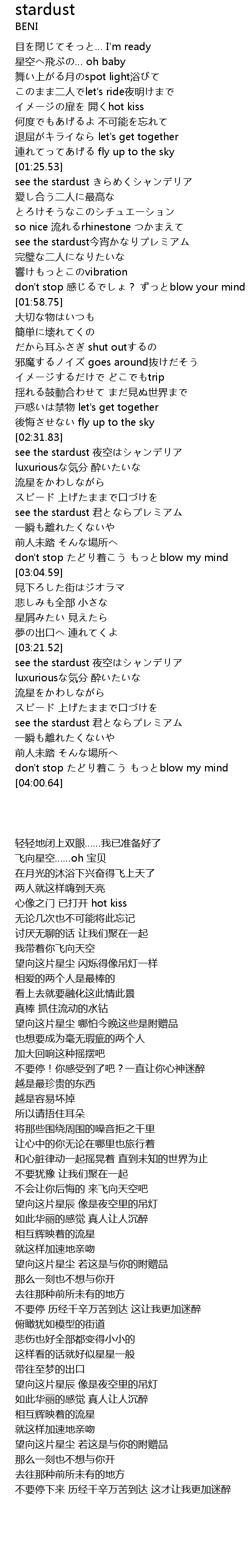 | [03:24.86] | see the stardust yè kōng |