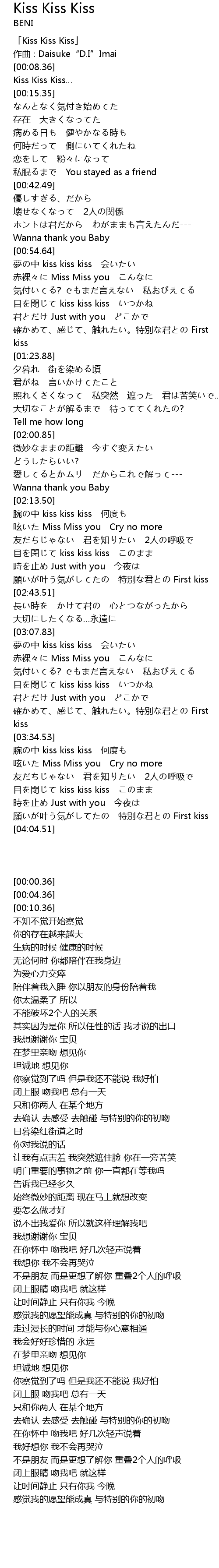 | [03:35.36] | wàn zhōng kiss kiss kiss hé dù |