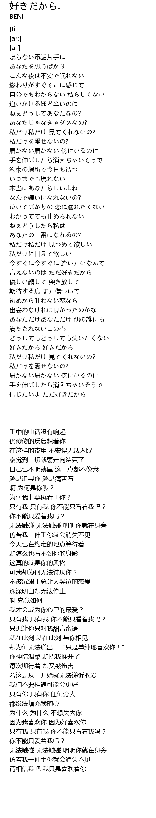 | [03:13.39] | 私だけ私だけ 見てくれないの? |
