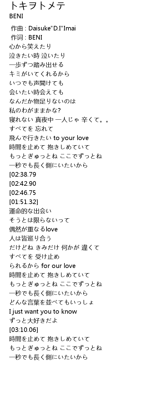 | [00:01.00] | 作词 : BENI |