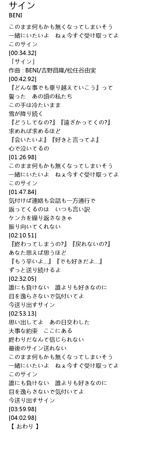 | [00:36.92] | 「サイン」 |