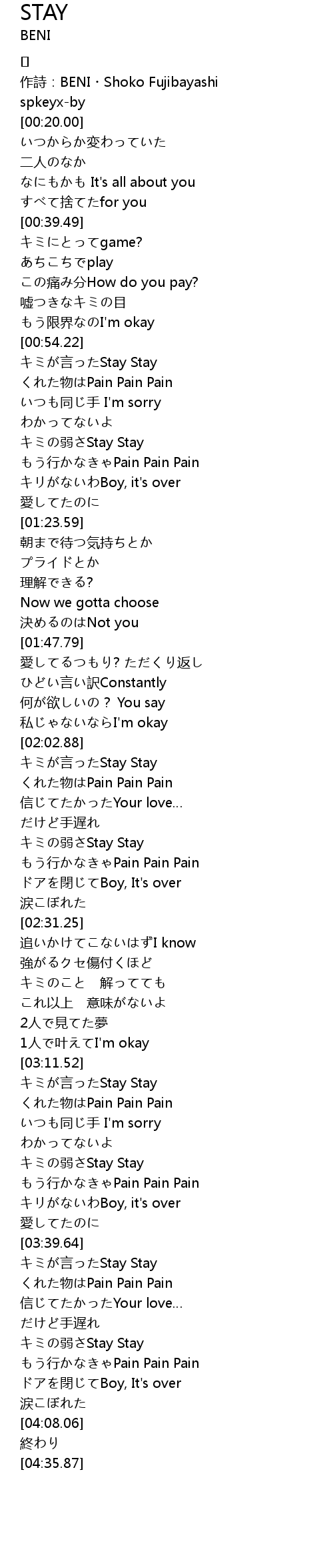 | [02:03.20] | yan Stay Stay |