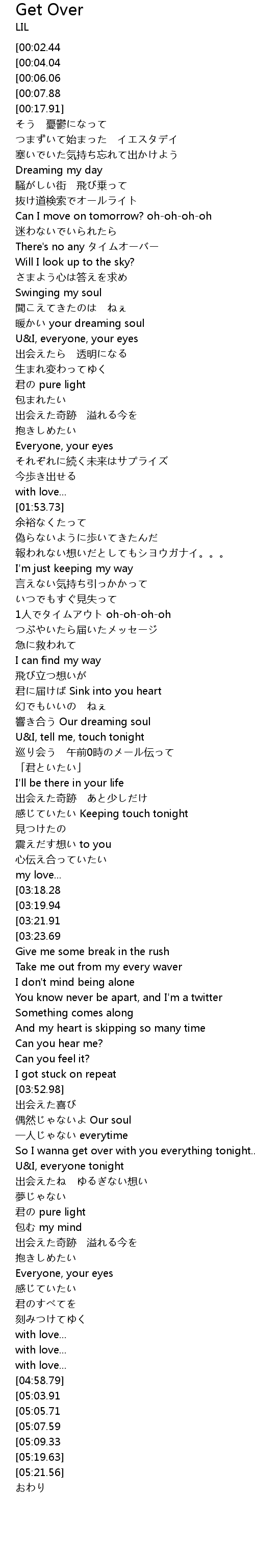 | [05:17.03][05:09.33] | We'll get over tonight... |