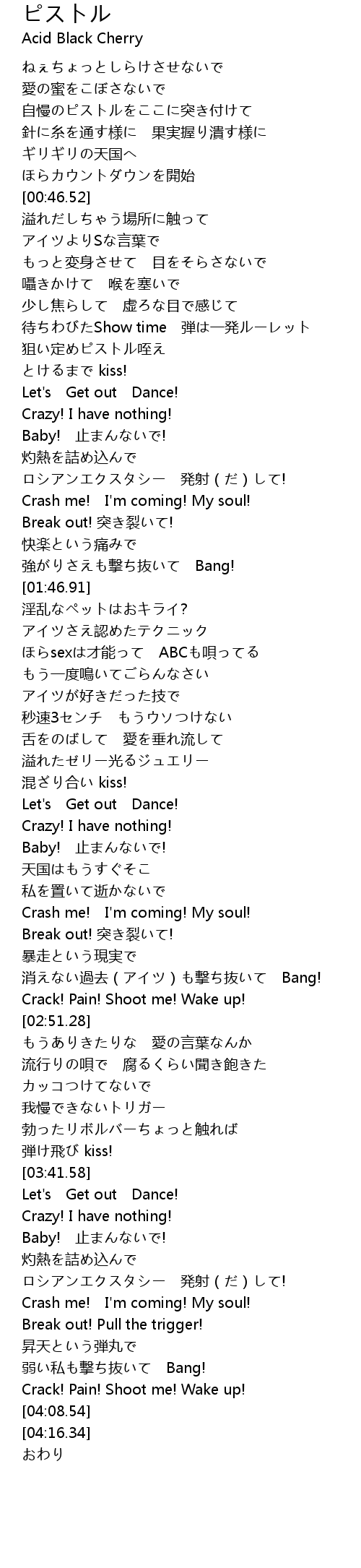 | [02:47.63] | Crack! Pain! Shoot me! Wake up! |