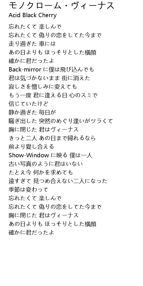 | 忘れたくて 偽りの恋をしてた今まで | |