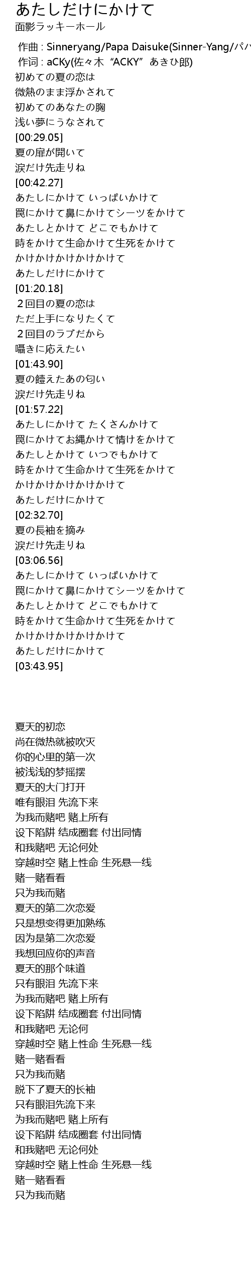 | [03:34.39] | かけかけかけかけかけて |