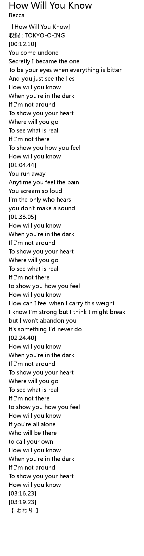 | [00:01.10] | 「How Will You Know」 |