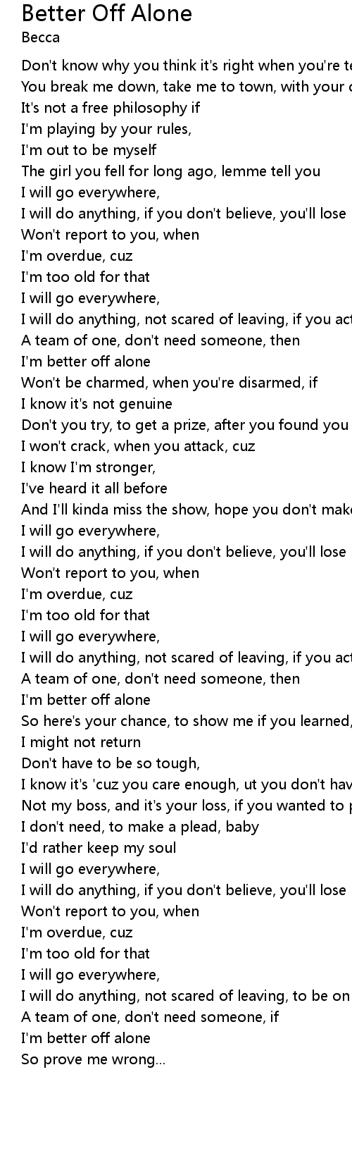 | I'm better off alone | |