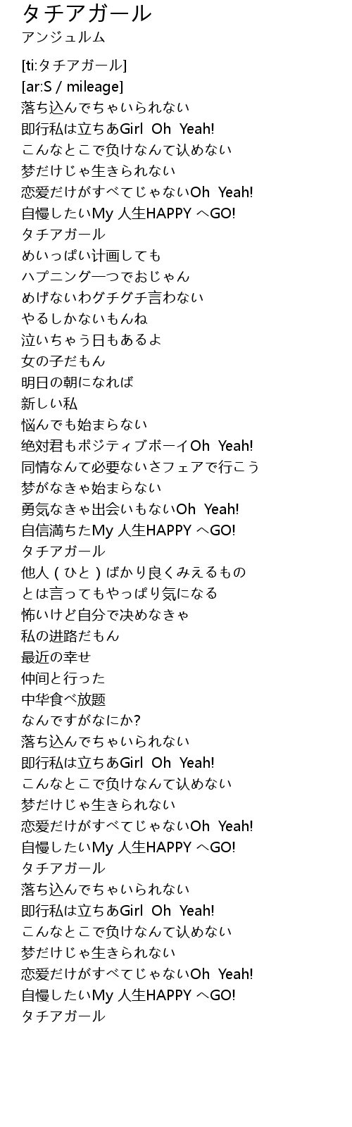 | [00:07.372] | 即行私は立ちあGirl Oh Yeah! |