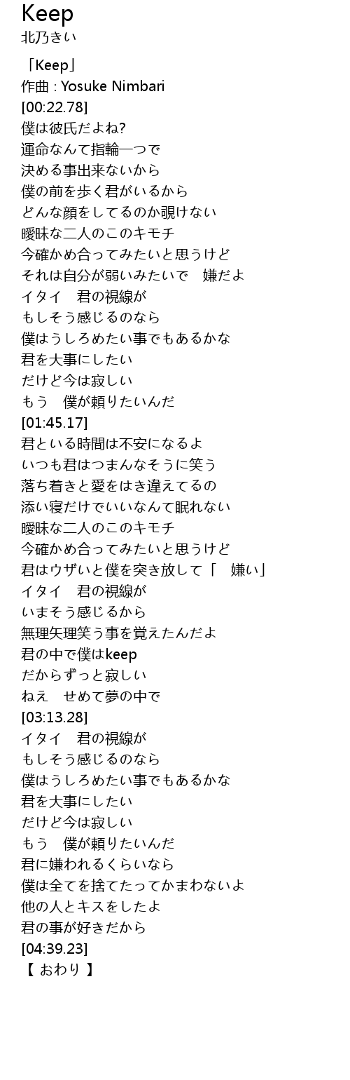 | [02:24.12] | 曖昧な二人のこのキモチ |