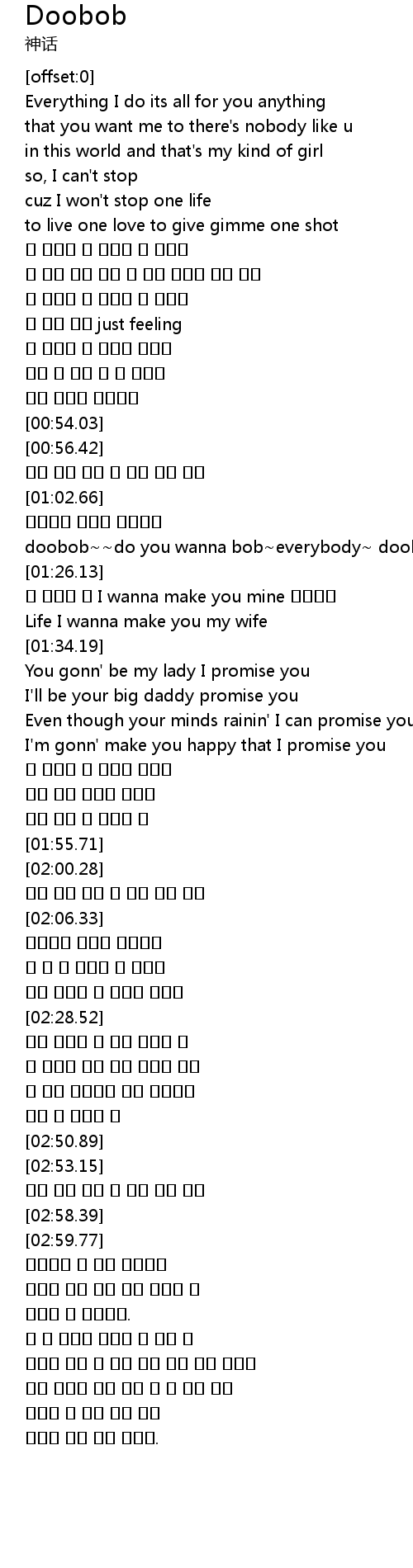 | [01:12.04] | doobob~~do you wanna bob~everybody~ doobob~~ |