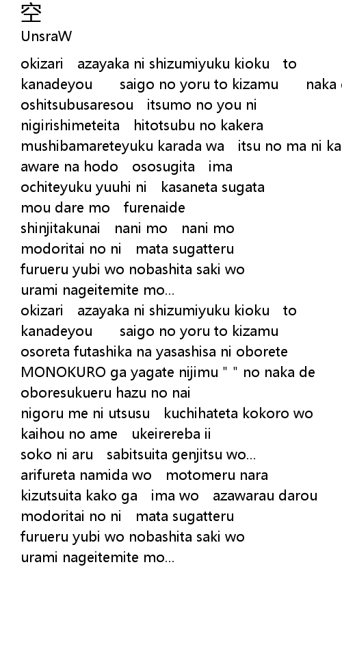 | nigoru me ni utsusu kuchihateta kokoro wo | |