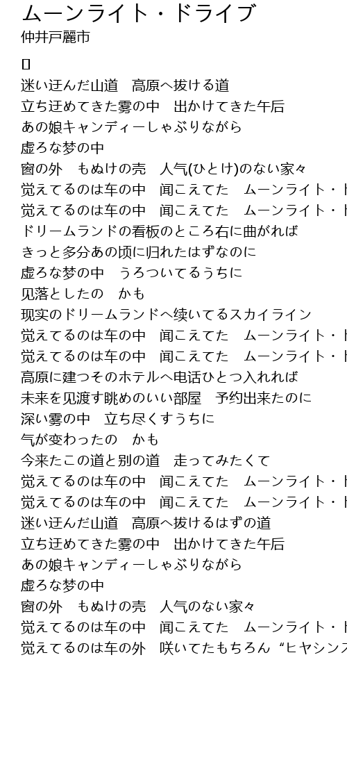 | 觉えてるのは车の中 闻こえてた ムーンライト・ドライブ | |