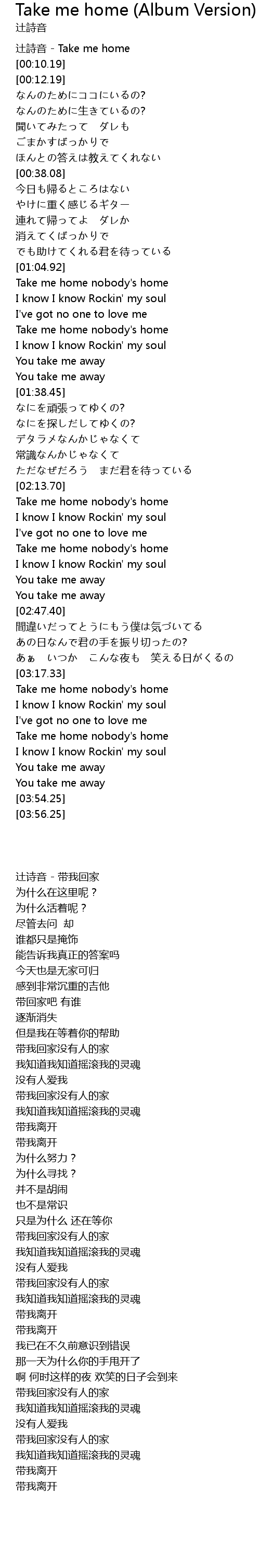 | [00:53.18] | 連れて帰ってよ ダレか |