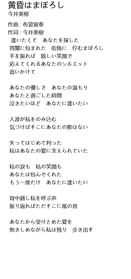 | 宵闇に包まれた 街角に 佇むまぼろし | |