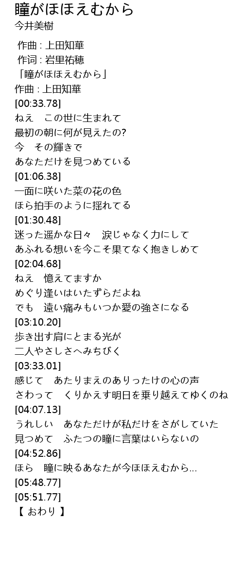 | [05:34.53] | ほら 瞳に映るあなたが今ほほえむから… |
