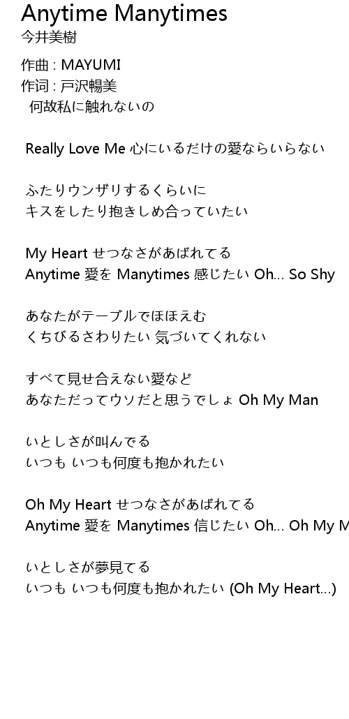 | Anytime 愛を Manytimes 信じたい Oh… Oh My Man | |