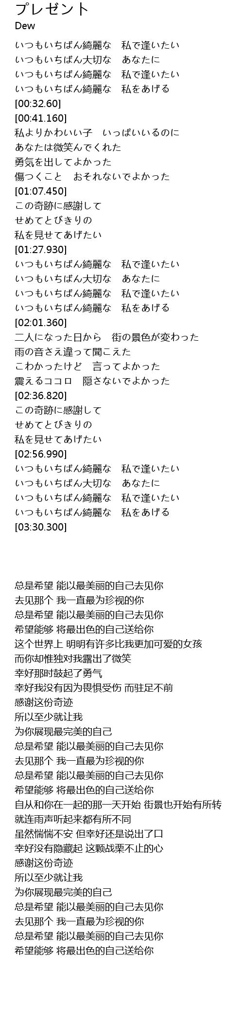 | [03:19.390] | いつもいちばん綺麗な 私をあげる |