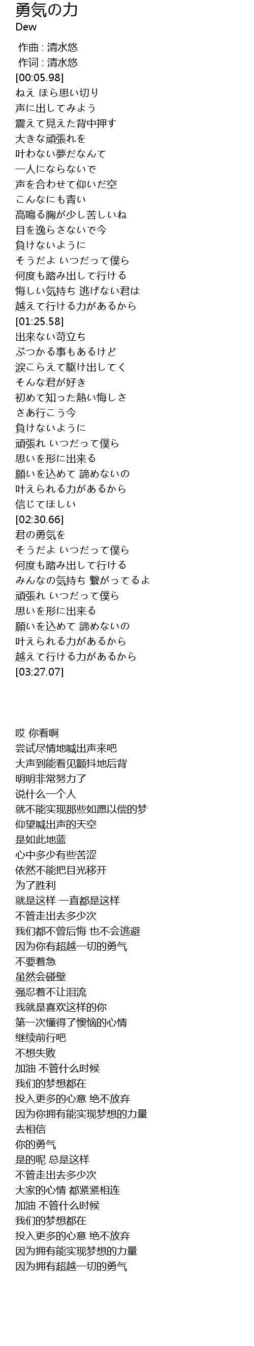 | [02:47.99] | みんなの気持ち 繋がってるよ |