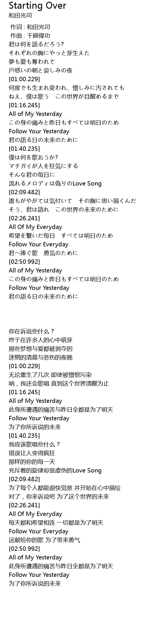 | [03:33.235] | Follow Your Yesterday |