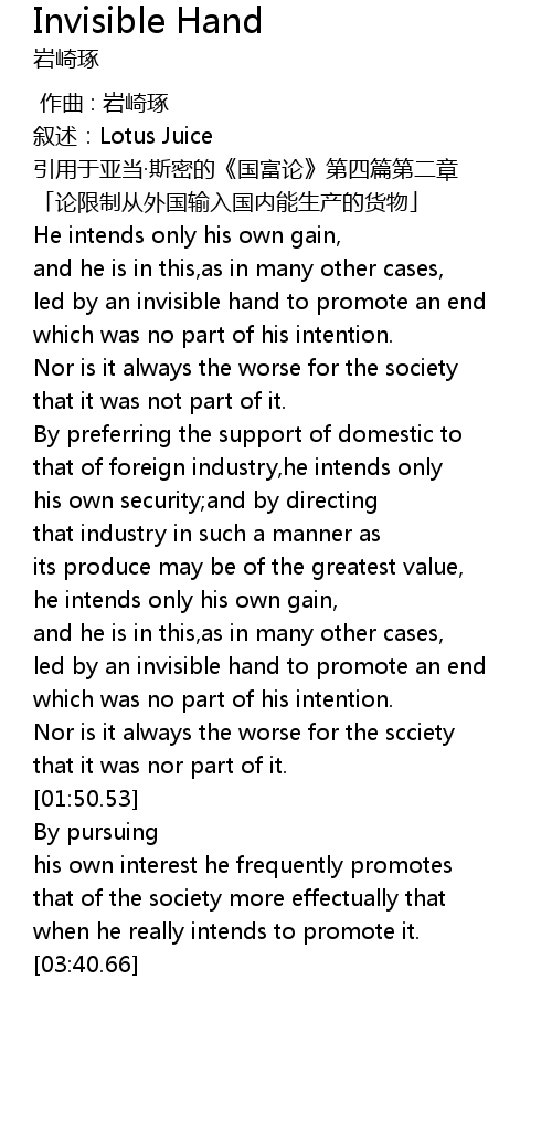 | [00:00.57] | 引用于亚当·斯密的《国富论》第四篇第二章 |