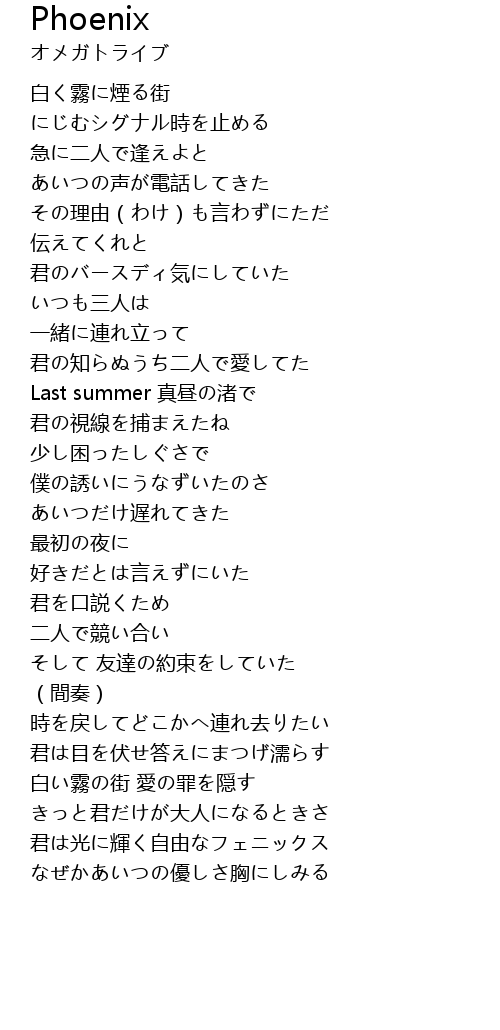 | [04:12] | 君は光に輝く自由なフェニックス |