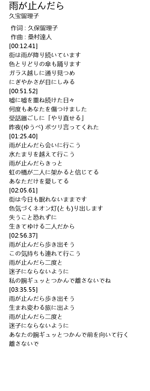 | [02:56.86] | 雨が止んだら歩き出そう |