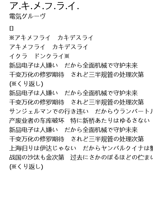 | ※アキメフライ カキデスライ | |