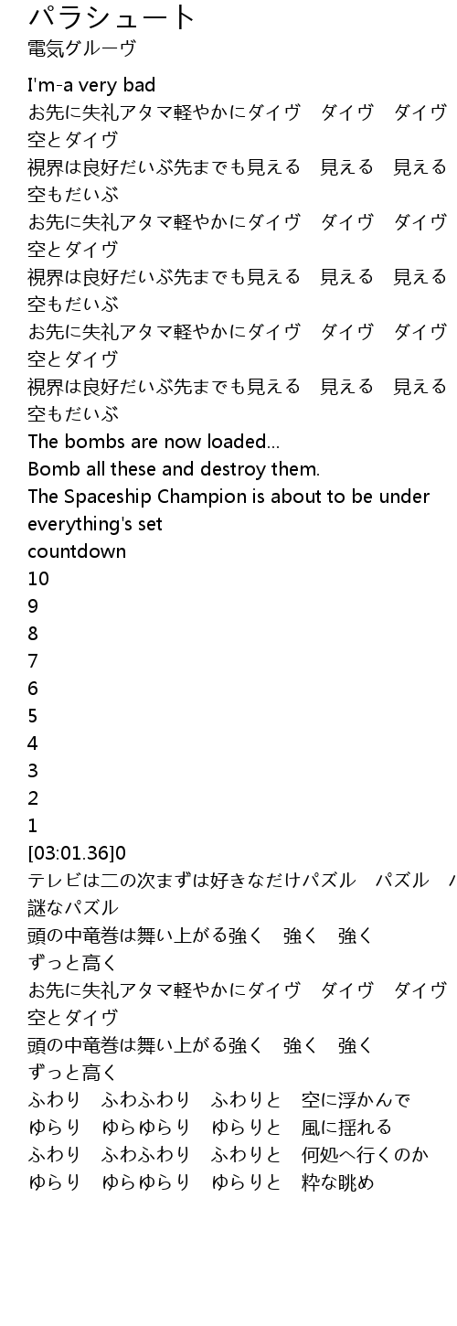| [04:21.52] | お先に失礼アタマ軽やかにダイヴ ダイヴ ダイヴ |
