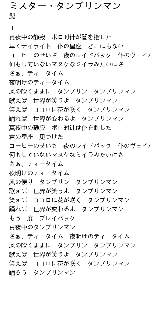 | Song | ミスター・タンブリンマン |