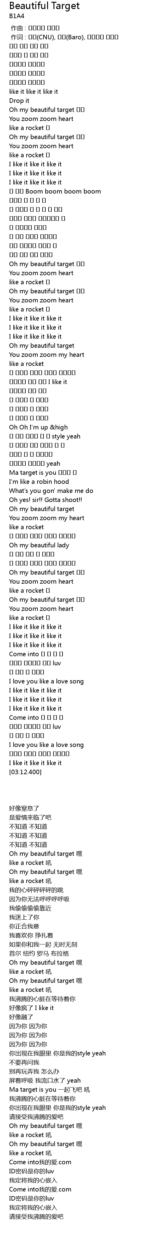 | [02:33.530] | Oh my beautiful target 헤이 |
