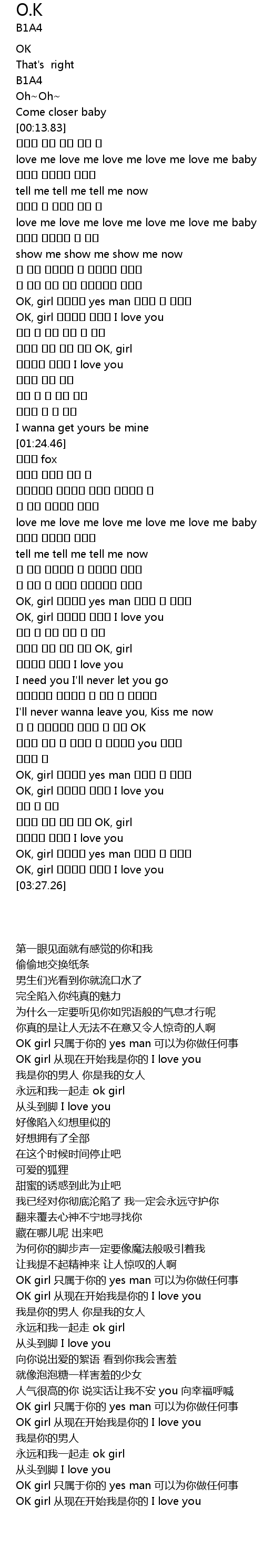 | [03:13.81] | OK, girl 너에게만 yes man 뭐든지 다 해줄게 |