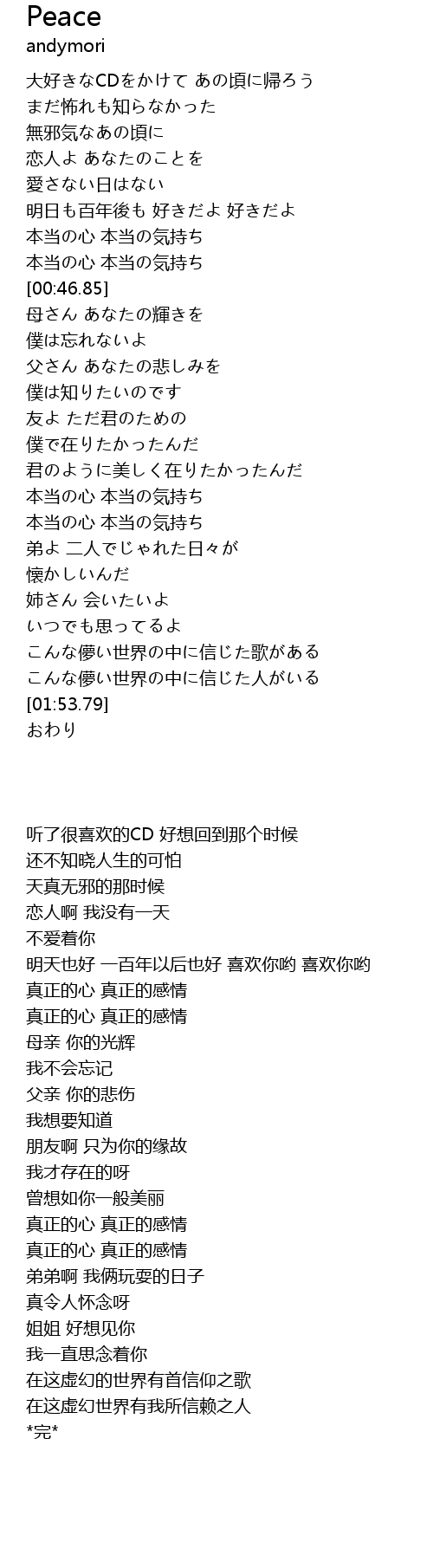 | [00:40.30] | 本当の心 本当の気持ち |