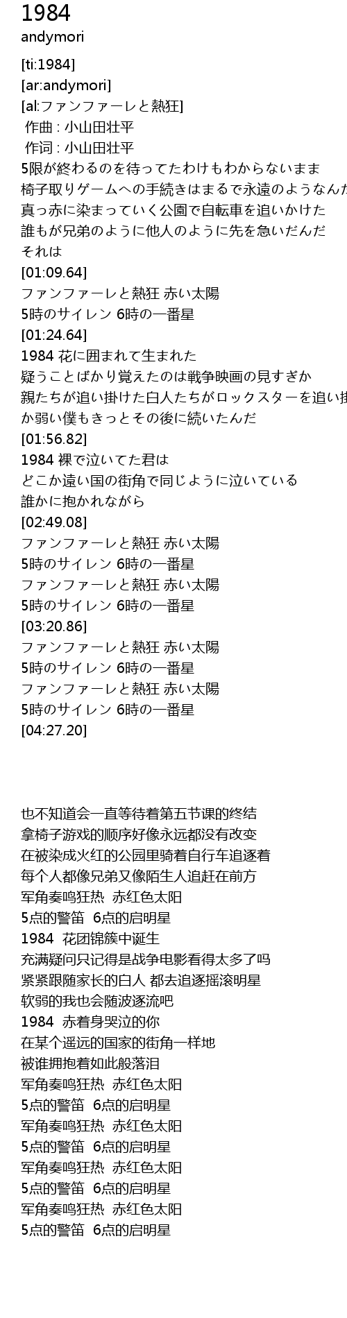 | [01:26.33] | 1984 花に囲まれて生まれた |