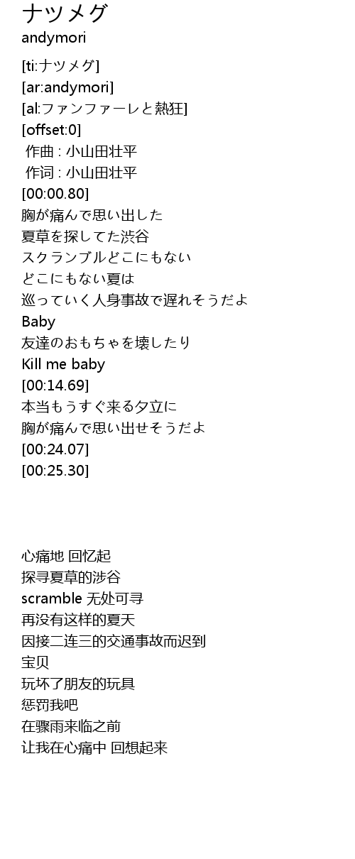 | [00:03.57] | 夏草を探してた渋谷 |