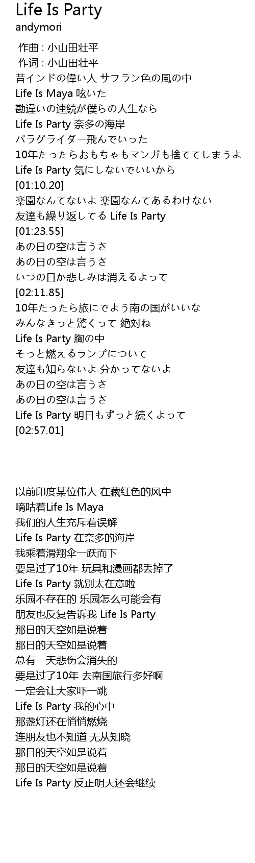| [02:49.71] | Life Is Party 明日もずっと続くよって |