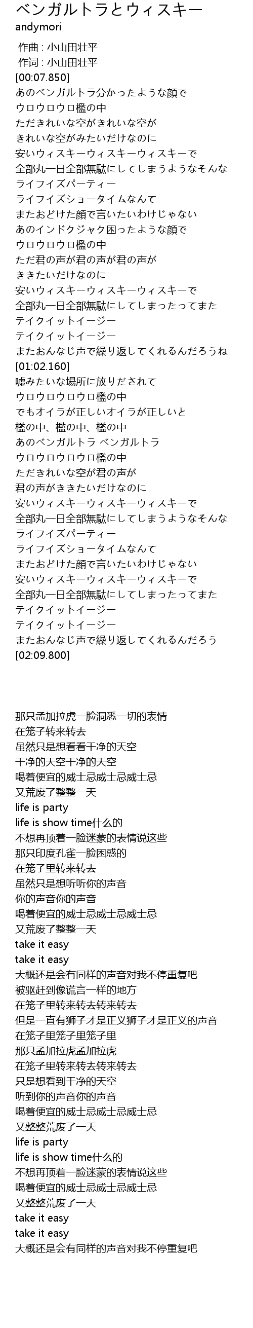 | [01:31.300] | あのベンガルトラ ベンガルトラ |