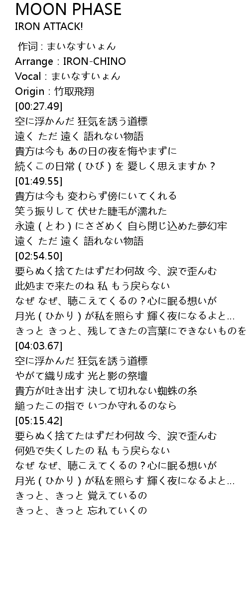 | [04:40.77] | やがて織り成す 光と影の祭壇 |