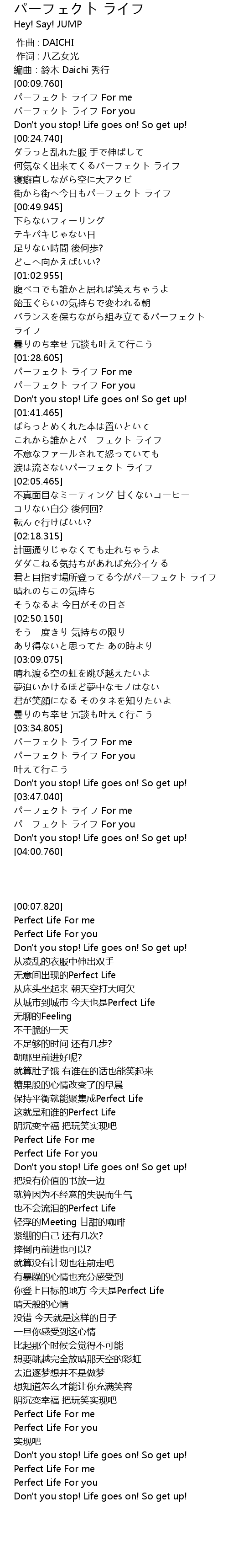 | [00:16.240] | パーフェクト ライフ For you |