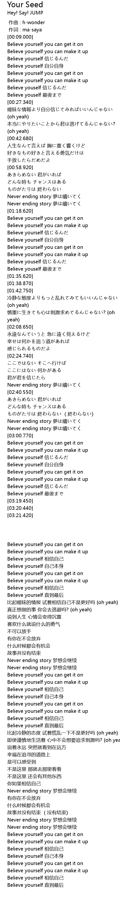 | [03:15.130] | Believe yourself xìn |