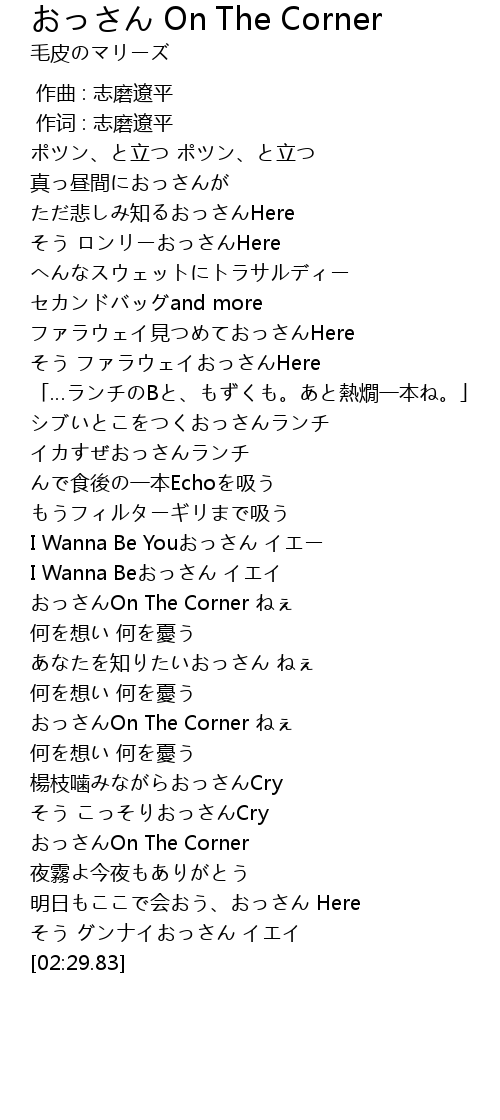 | [01:21.65] | おっさんOn The Corner ねぇ |