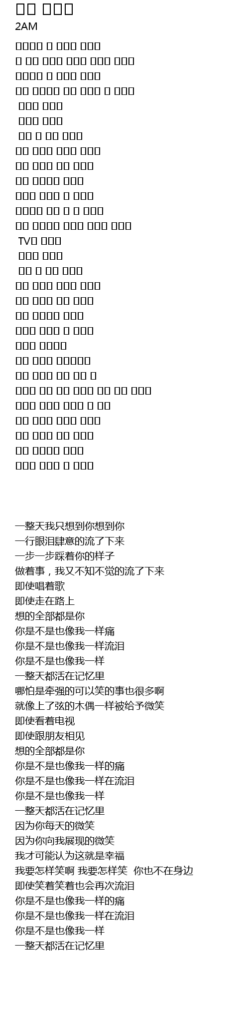 | [02:49.87] | 웃어도 웃어도 눈물이 또 흘러 |