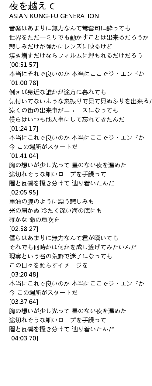 | Song | 夜を越えて |