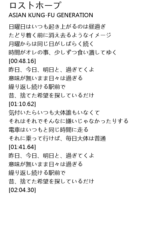| [01:47.37] | 意味が無いまま日々は過ぎる |